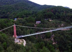 本橋梁工程位于山西娘子關(guān)瀑布景區(qū)內(nèi),完工于2017年8月,為懸索橋型。本橋全長(zhǎng)71.48m,總寬2.3m,凈寬1.8m。
